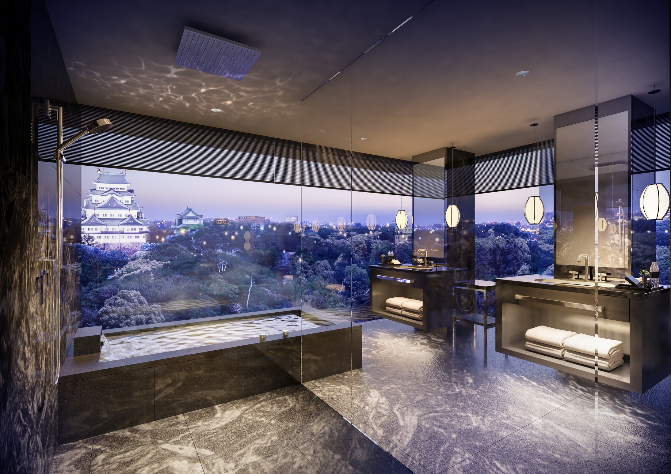 組子や金箔などの伝統工芸に、モロッコランプの異文化の彩りを重ねた「グランデ」クラスの客室からは、名古屋城が一望。