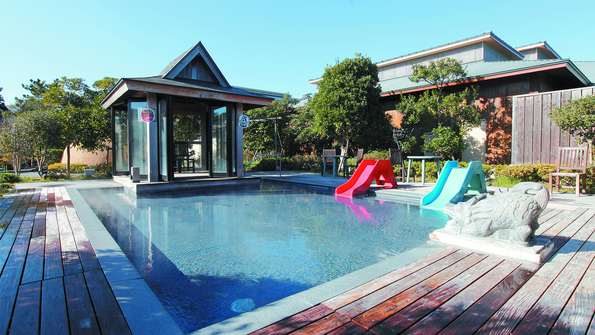 水着着用の露天風呂エリアでは、お子様用のすべり台があるお風呂もあります。