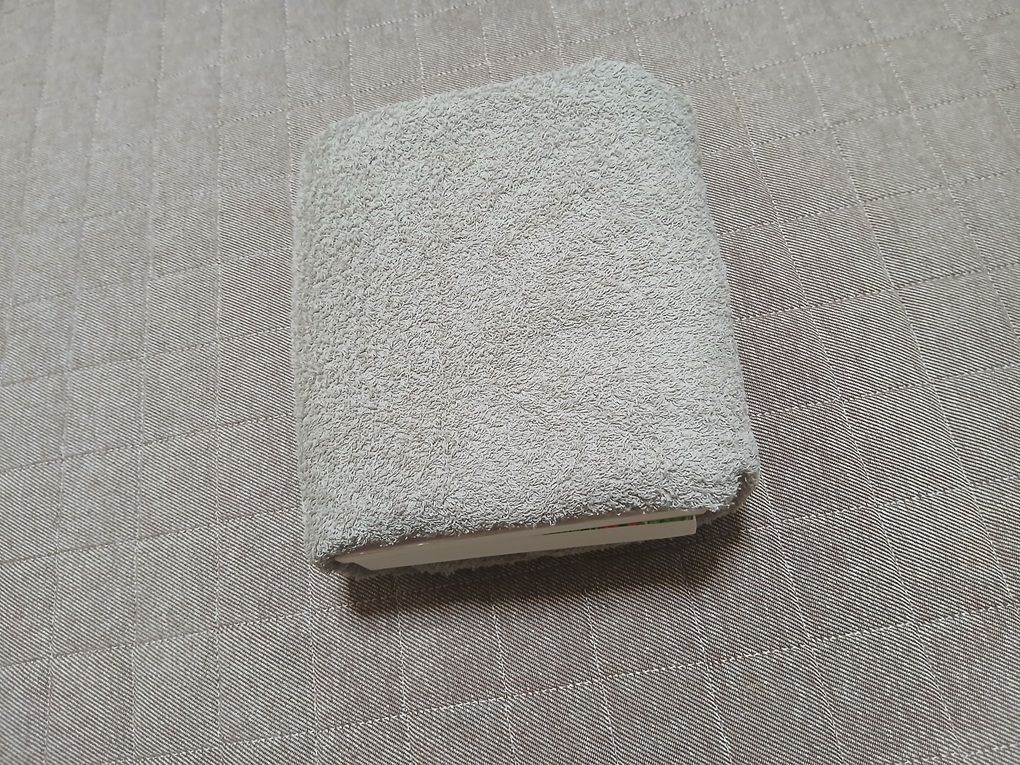 本や雑誌を重ねるだけでも、正座やあぐらのサポートになりますが、バスタオルで包むこのによって、安定感が増します。