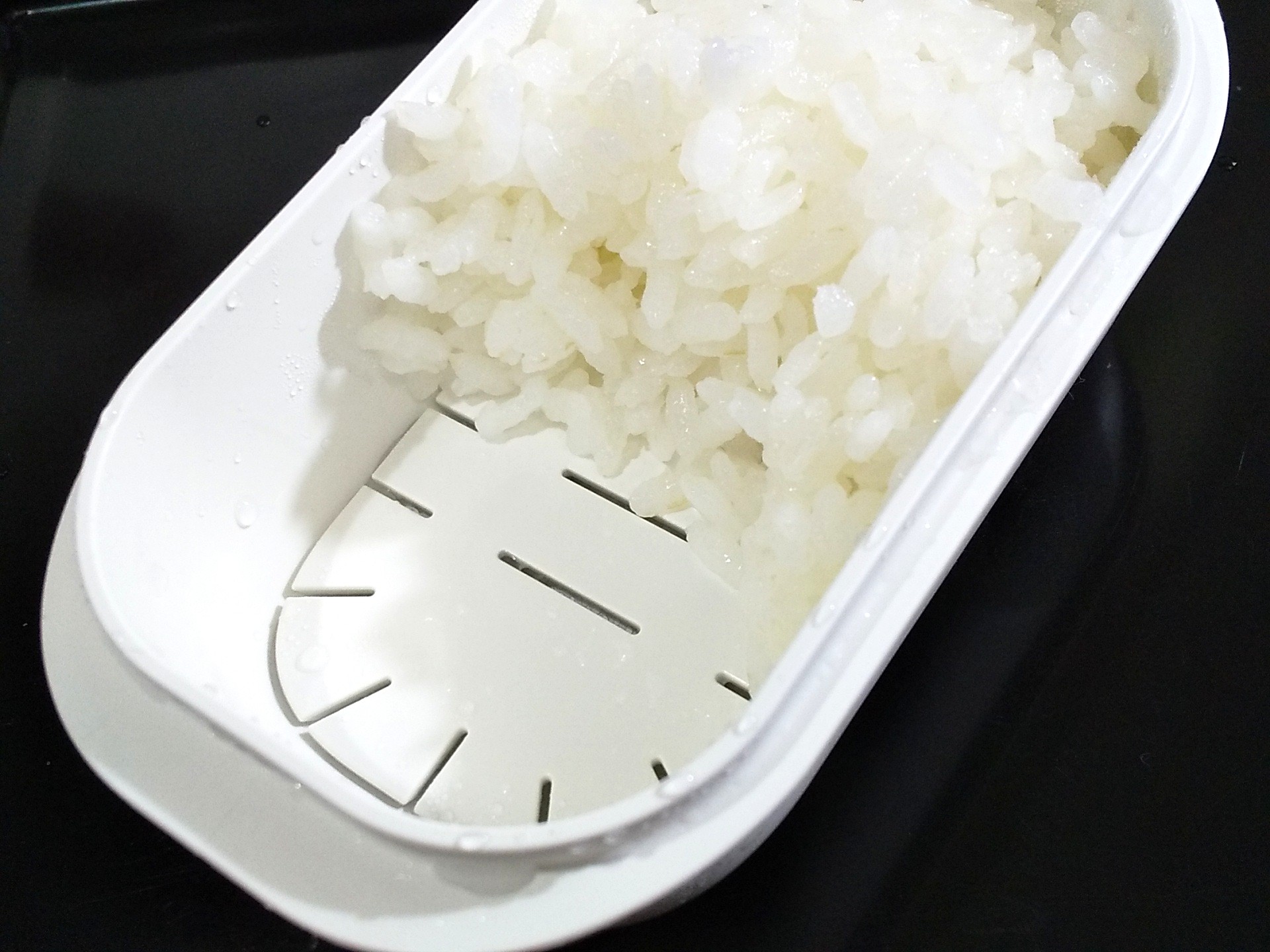 底に「すのこ」が入っているから、レンチンして水分が出ても、ごはんがベチャっとしない。
