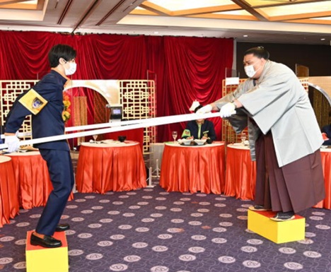 提供されるお料理は「後楽園飯店」のものですが、番組収録は店内では難しいので、隣の東京ドームホテルの宴会場を利用したのだと思います。