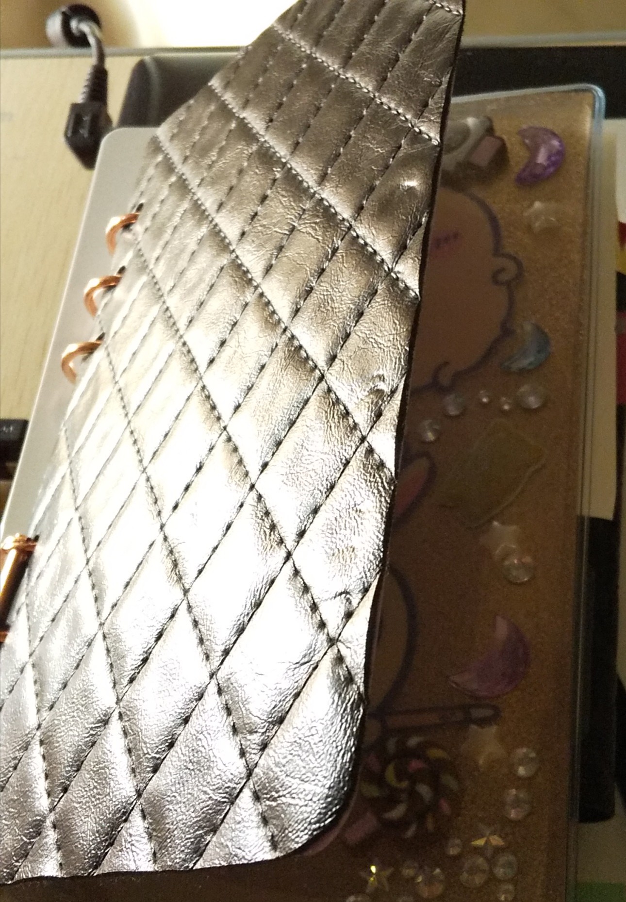 帰宅してこれらのパーツを直接、手帳の表紙に貼り付けてみた。