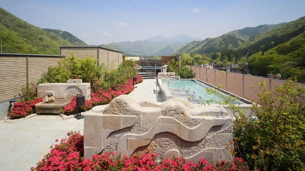 「空中庭園露天風呂」から鬼怒川温泉の絶景が望める。