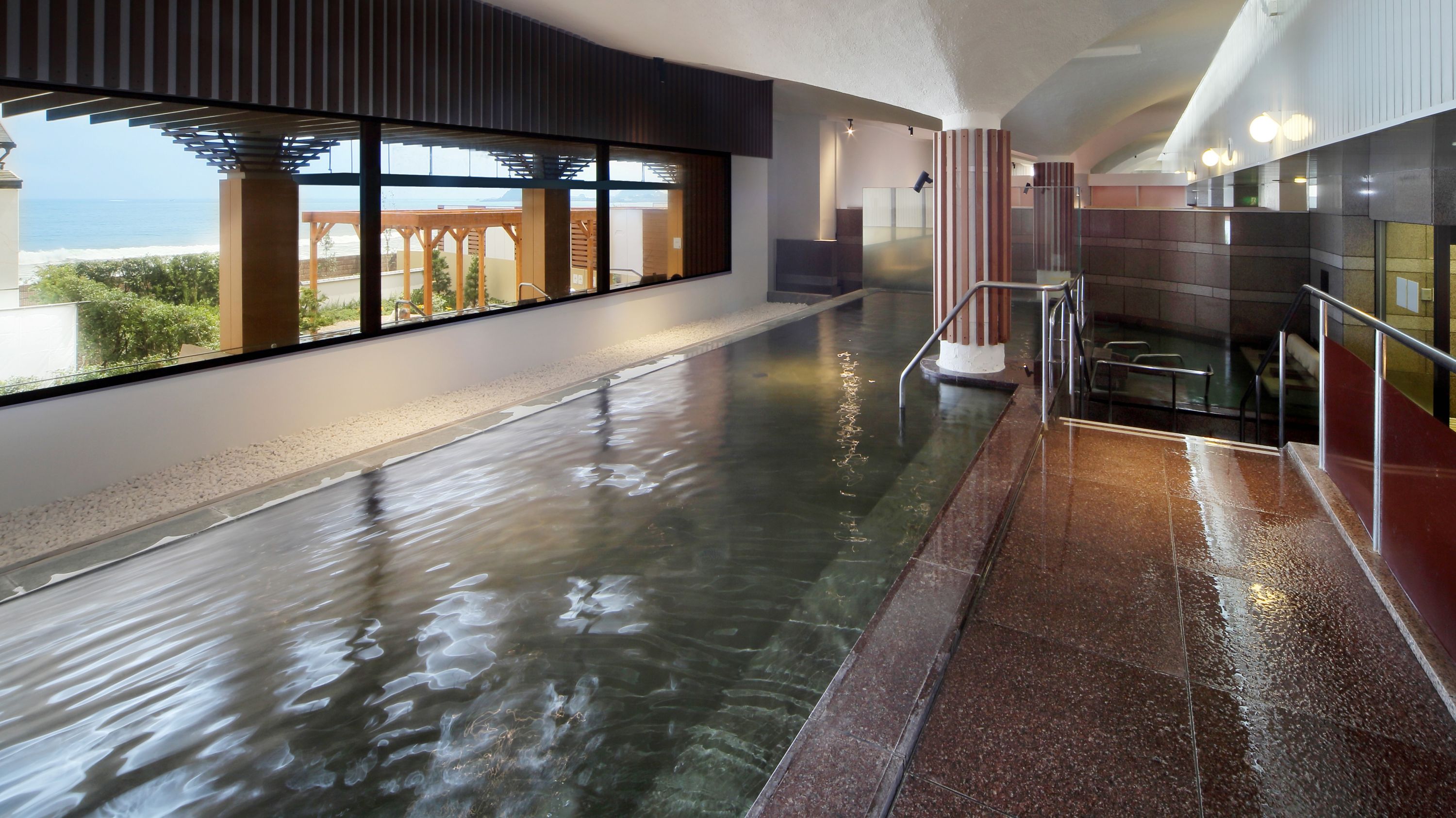 各種温泉をご用意した大浴場「海の回廊」、開放的な空間でプライベートな時間を過ごすことができる貸切露天風呂、プレミアムフロアの露天風呂客室と、3種類の温泉がある。