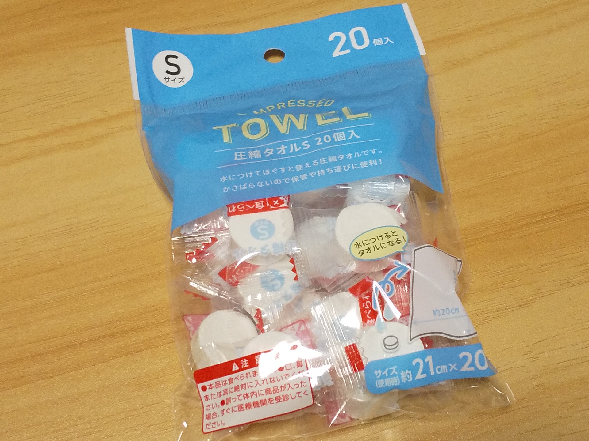 「昔ダイソーにあった、濡らすとハンドタオルくらいのサイズになる圧縮タオルは、もう終売なのかなあ」