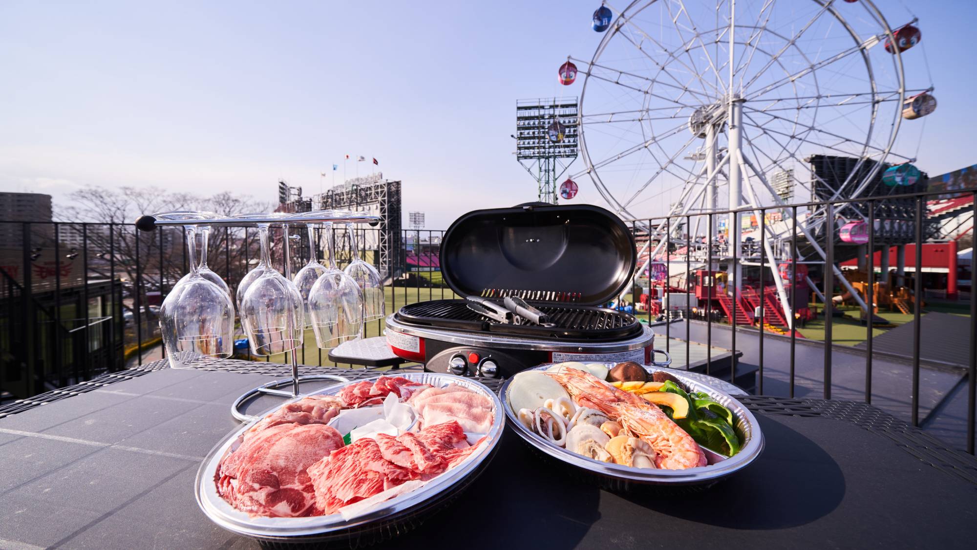 開放的なスペースでスタジアムを見ながらバーベキューができる。